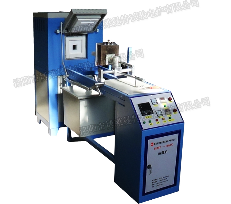 10, 主要對試樣進行熱冷性次數(shù)實驗,電爐達到所需溫度,通過杠桿原理遠程打開爐門,試樣通過特殊夾頭固定,通過軌道到達爐膛內(nèi),在高溫區(qū)一定時間后,拉出爐體外進行,水淬或風冷的方式進行冷卻,反復操作,記錄次數(shù),直到試樣裂開。